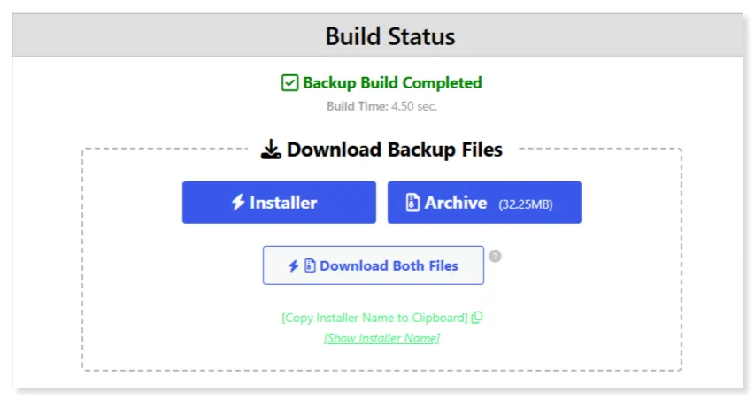 Even though it is primarily designed for website migration, cloning and manual restoration, it can be used as a backup tool.