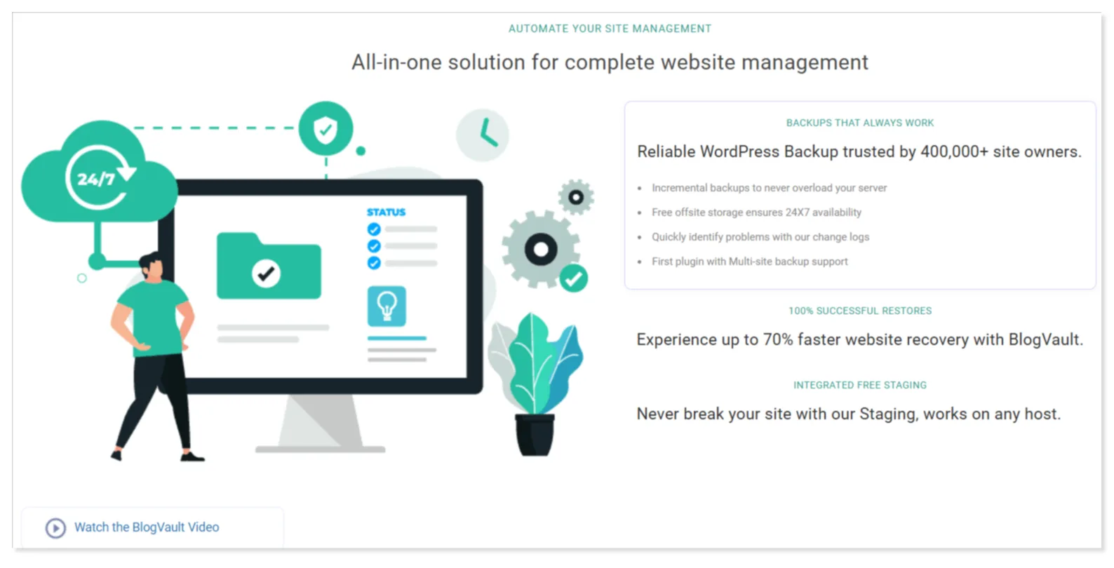 BlogVault is ideal for E-Commerce sites, Agencies & Developers and High traffic sites. If you are looking for a plugin that allows one-click backup, restoration and migration then BlogVault is worth the investment as along with that it offers real-time incremental backups and staging facilities too.