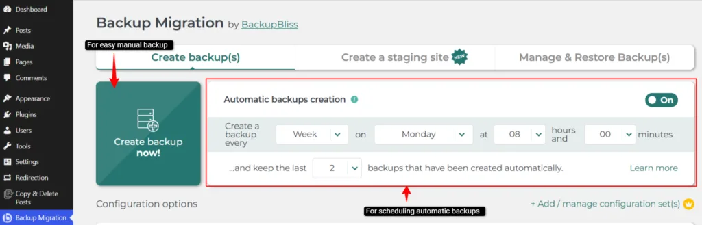 Backup Migration is a simple and beginner friendly plugin and is a good choice if you are looking for backup and migration with one-click restoration. It works wonders for bloggers and small businesses. But if you have a large site or want more control over cloud storage then you might want to go for alternatives like UpdraftPlus.